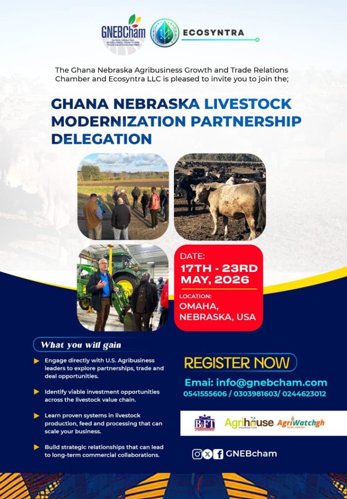 The Ghana-Nebraska Agribusiness Growth and Trade Relations Chamber is an indispensable platform for Agribusinesses, farmers, exporters, importers, agro-processors, service providers, financial institutions, IT Firms, farmers, Academia, investors, researchers, private and public sectors, officials, Professionals and entrepreneurs, seeking to tap into the vast opportunities, within the global agribusiness sector.